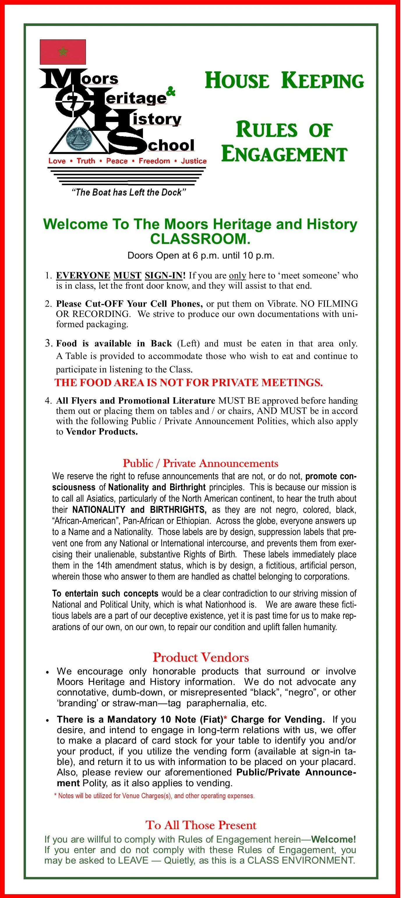 And so.....Moors History and Heritage School (MHHS) with no doors, no lock, no key, led to a forum of sharing information, growth and development for many, as a matter of record.